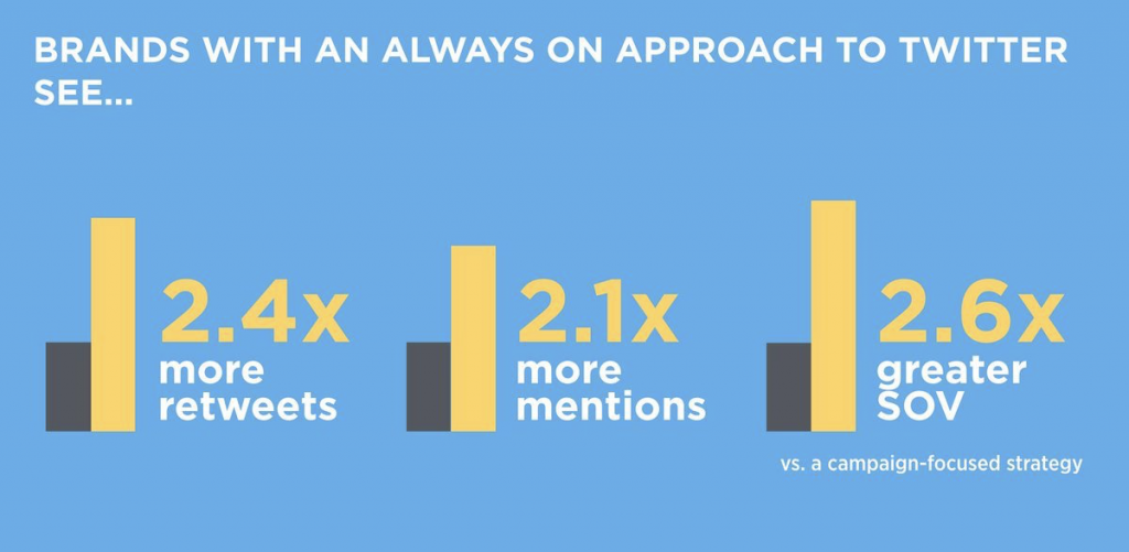 Decision-making processes are longer, so it is important for the target audience is exposed to your messages multiple times. Twitter’s internal data shows B2B audiences are much more likely to engage on Twitter after repeat exposure to messaging. Someone who has seen a business’s message numerous times is 335% more likely to click on a link in a Tweet by that business than someone who has only been exposed to the message once.